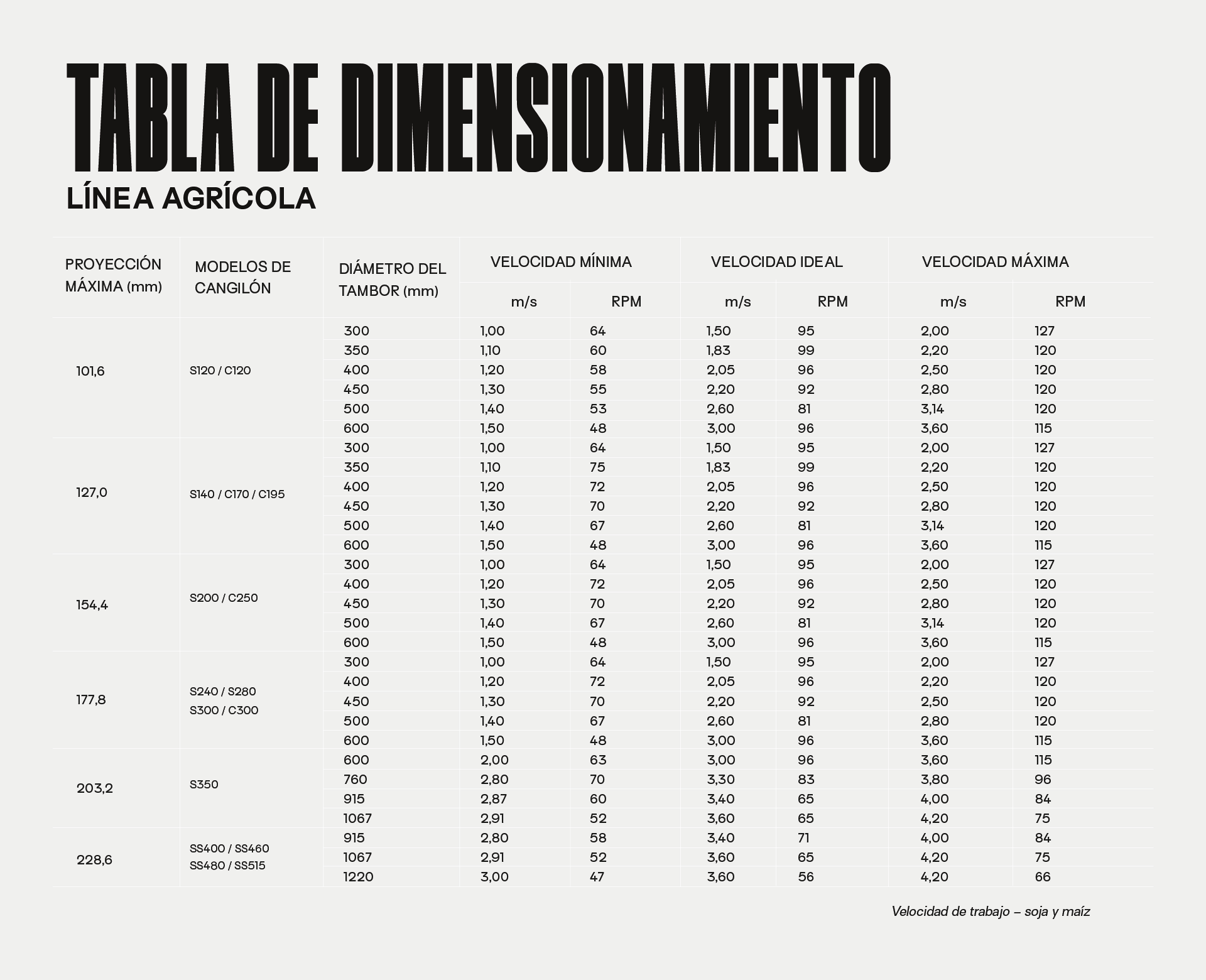 Los cangilones elevadores de la línea agrícola están diseñados para lograr el máximo rendimiento individual con un eficiente factor de alimentación y descarga en una amplia variedad de velocidades. Se recomiendan para uso intermitente, no industrial y aplicaciones en el mercado agrícola, como soja, trigo, sorgo, arroz, café, frijol, maní cebada, etc.